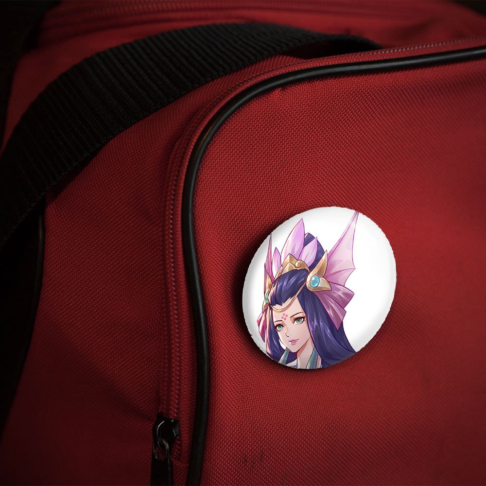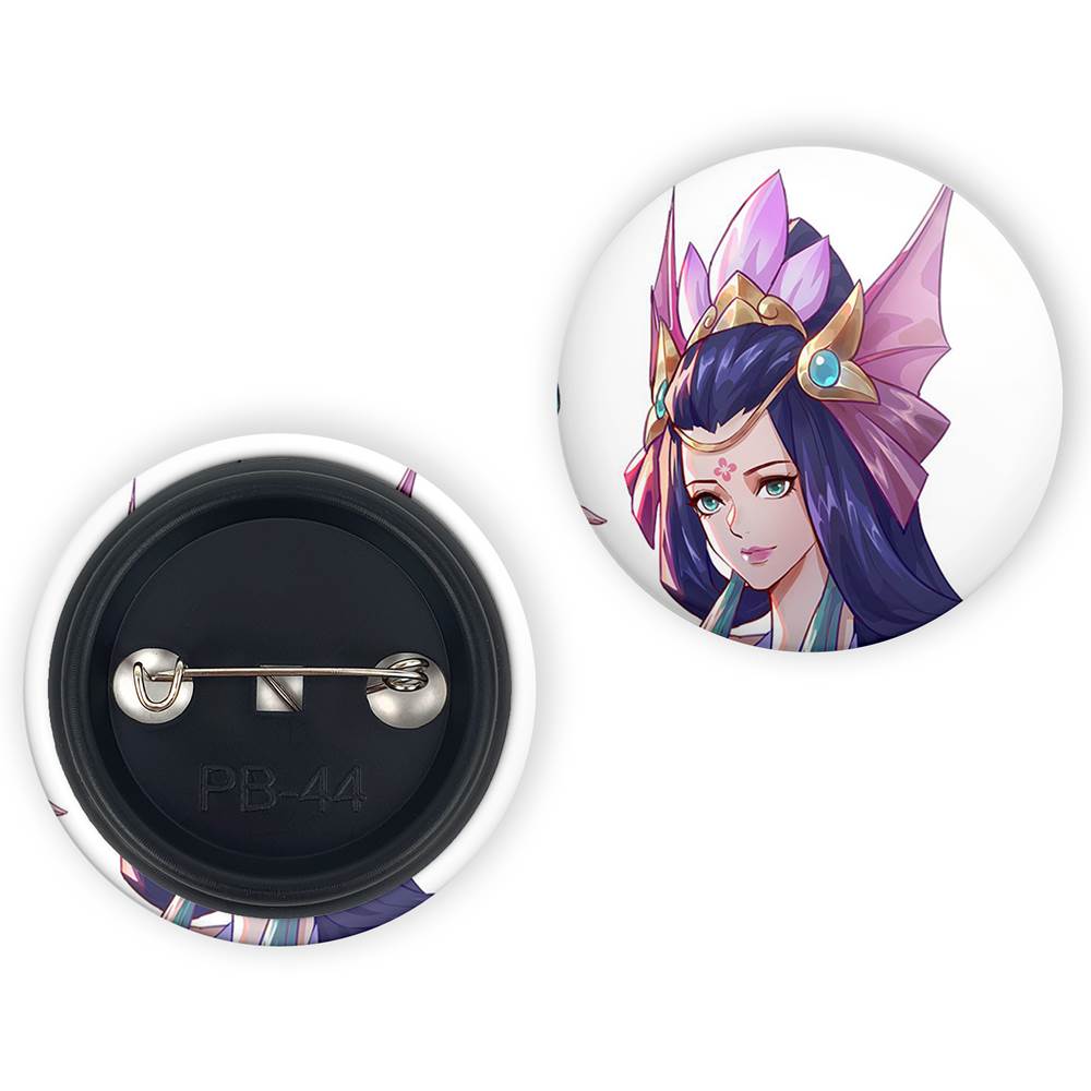 پیکسل 44 میلی متری بازی لیگ اف لجندز (League of Legends)خندالو با روکش سلفون حرارتی مات مخملی ضدخش و قطعه پشتی رنگی تولید شده است. قطعات پلاستیکی پشت پیکسل با سوزن یک تکه ثابت و بدون لغزش و جا به جایی، ایستایی بسیار بهتری نسبت به پشتی فلزی پیکسل دارند که این مهم در تولید این محصول نیز رعایت شده است.