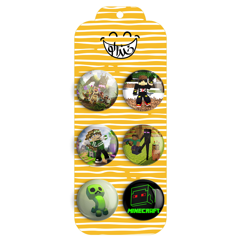 مجموعه 6 عددی پیکسل خندالو طرح بازی ماینکرافت (Minecraft) با روکش سلفون حرارتی براق ضدخش و قطعه پشتی رنگی تولید شده است. قطعات پشتی از میان 6 رنگ سفید، مشکی، صورتی، زرد، آبی و قرمز که با توجه به نوع و رنگبندی طرح روی پیکسل انتخاب شده اند تولید می شود و در هر بسته بندی مطابق عکس محصول می باشد.