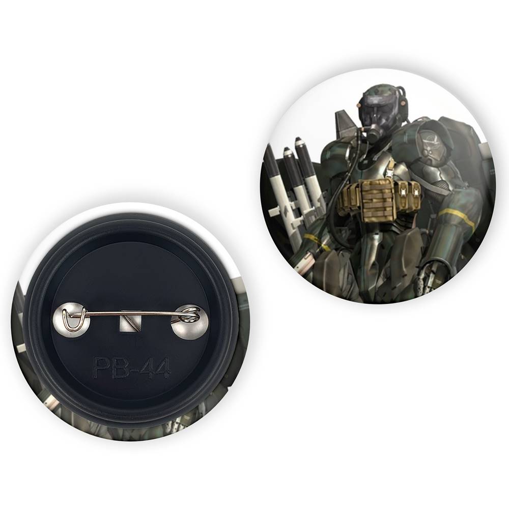 پیکسل 44 میلی متری بازی متال گیر (Metal Gear)خندالو با روکش سلفون حرارتی مات مخملی ضدخش و قطعه پشتی رنگی تولید شده است. قطعات پلاستیکی پشت پیکسل با سوزن یک تکه ثابت و بدون لغزش و جا به جایی، ایستایی بسیار بهتری نسبت به پشتی فلزی پیکسل دارند که این مهم در تولید این محصول نیز رعایت شده است.