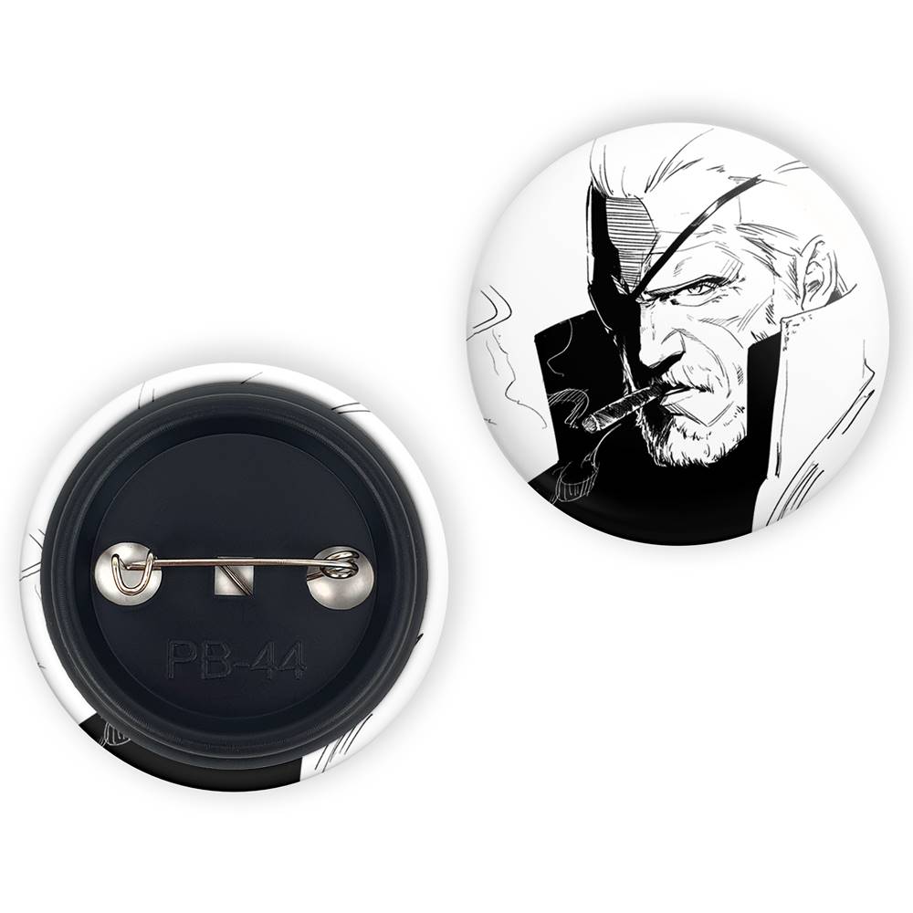 پیکسل 44 میلی متری بازی متال گیر (Metal Gear)خندالو با روکش سلفون حرارتی مات مخملی ضدخش و قطعه پشتی رنگی تولید شده است. قطعات پلاستیکی پشت پیکسل با سوزن یک تکه ثابت و بدون لغزش و جا به جایی، ایستایی بسیار بهتری نسبت به پشتی فلزی پیکسل دارند که این مهم در تولید این محصول نیز رعایت شده است.