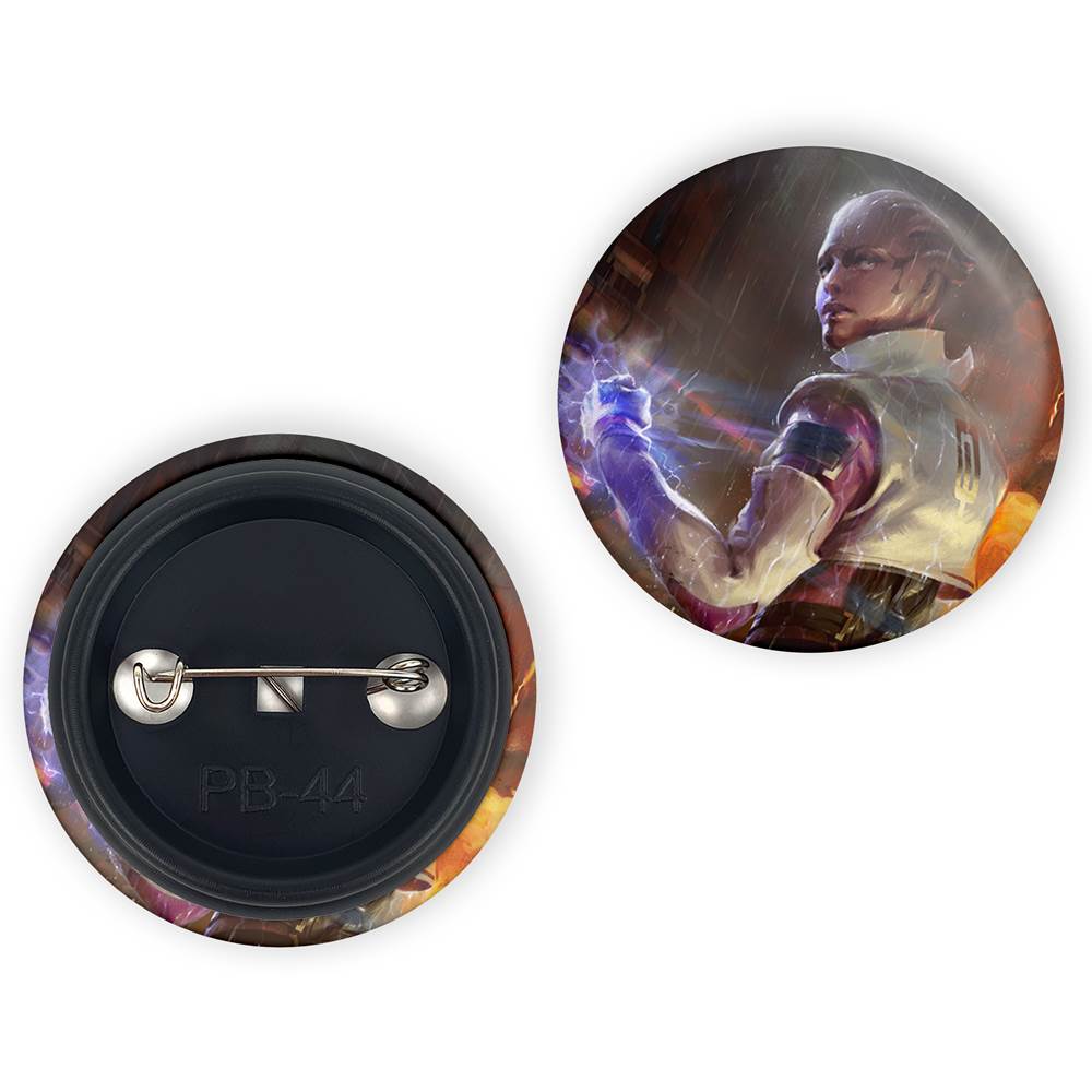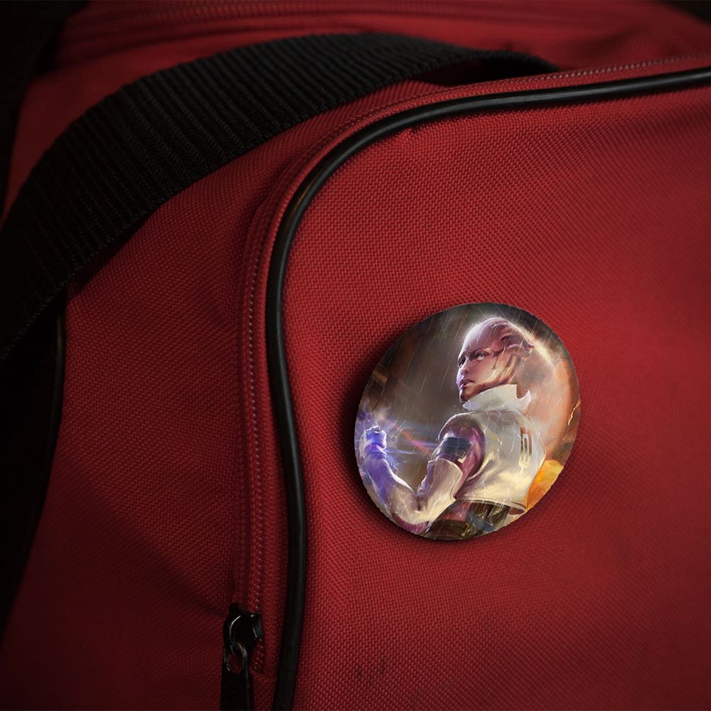 پیکسل 44 میلی متری بازی مس افکت (Mass Effect)خندالو با روکش سلفون حرارتی مات مخملی ضدخش و قطعه پشتی رنگی تولید شده است. قطعات پلاستیکی پشت پیکسل با سوزن یک تکه ثابت و بدون لغزش و جا به جایی، ایستایی بسیار بهتری نسبت به پشتی فلزی پیکسل دارند که این مهم در تولید این محصول نیز رعایت شده است.