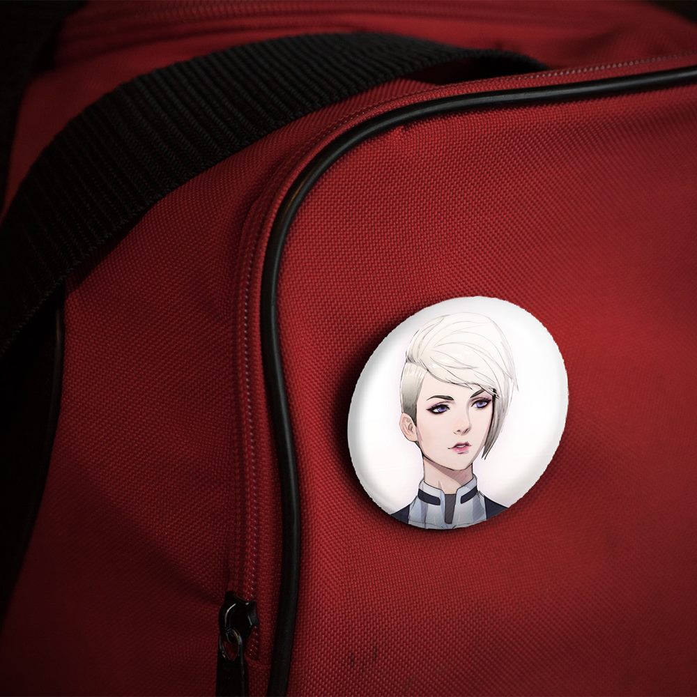 پیکسل 44 میلی متری بازی مس افکت (Mass Effect)خندالو با روکش سلفون حرارتی مات مخملی ضدخش و قطعه پشتی رنگی تولید شده است. قطعات پلاستیکی پشت پیکسل با سوزن یک تکه ثابت و بدون لغزش و جا به جایی، ایستایی بسیار بهتری نسبت به پشتی فلزی پیکسل دارند که این مهم در تولید این محصول نیز رعایت شده است.