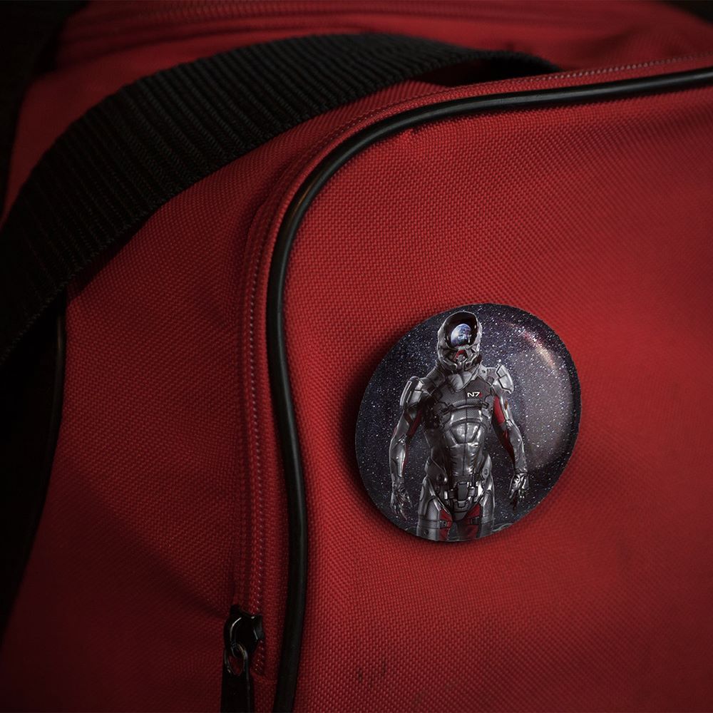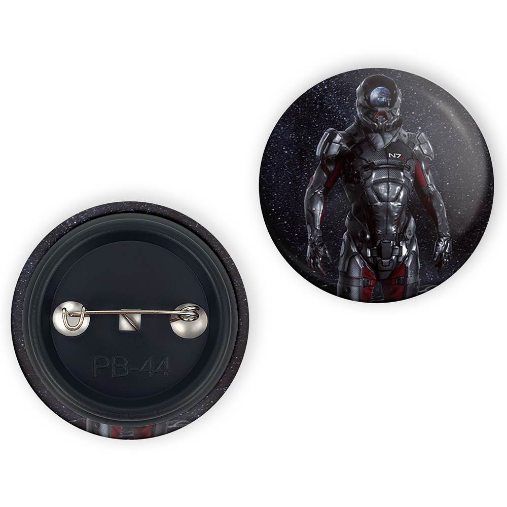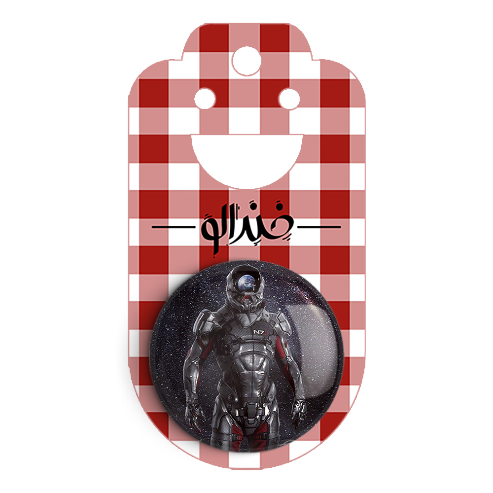 پیکسل 44 میلی متری بازی مس افکت (Mass Effect)خندالو با روکش سلفون حرارتی مات مخملی ضدخش و قطعه پشتی رنگی تولید شده است. قطعات پلاستیکی پشت پیکسل با سوزن یک تکه ثابت و بدون لغزش و جا به جایی، ایستایی بسیار بهتری نسبت به پشتی فلزی پیکسل دارند که این مهم در تولید این محصول نیز رعایت شده است.