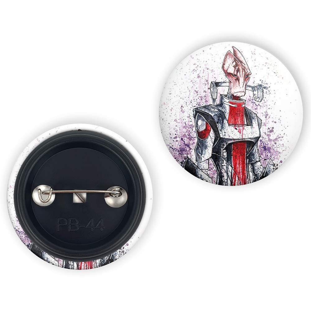 پیکسل 44 میلی متری بازی مس افکت (Mass Effect)خندالو با روکش سلفون حرارتی مات مخملی ضدخش و قطعه پشتی رنگی تولید شده است. قطعات پلاستیکی پشت پیکسل با سوزن یک تکه ثابت و بدون لغزش و جا به جایی، ایستایی بسیار بهتری نسبت به پشتی فلزی پیکسل دارند که این مهم در تولید این محصول نیز رعایت شده است.