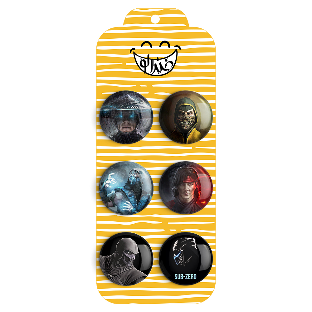 مجموعه 6 عددی پیکسل خندالو طرح بازی مورتال کامبت (Mortal Komba) با روکش سلفون حرارتی براق ضدخش و قطعه پشتی رنگی تولید شده است. قطعات پشتی از میان 6 رنگ سفید، مشکی، صورتی، زرد، آبی و قرمز که با توجه به نوع و رنگبندی طرح روی پیکسل انتخاب شده اند تولید می شود و در هر بسته بندی مطابق عکس محصول می باشد.