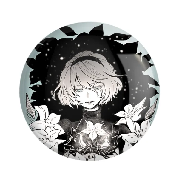 پیکسل 44 میلی متری بازی نیر اتوماتا (Nier Automata) خندالو با روکش سلفون حرارتی مات مخملی ضدخش و قطعه پشتی رنگی تولید شده است. قطعات پلاستیکی پشت پیکسل با سوزن یک تکه ثابت و بدون لغزش و جا به جایی، ایستایی بسیار بهتری نسبت به پشتی فلزی پیکسل دارند که این مهم در تولید این محصول نیز رعایت شده است.