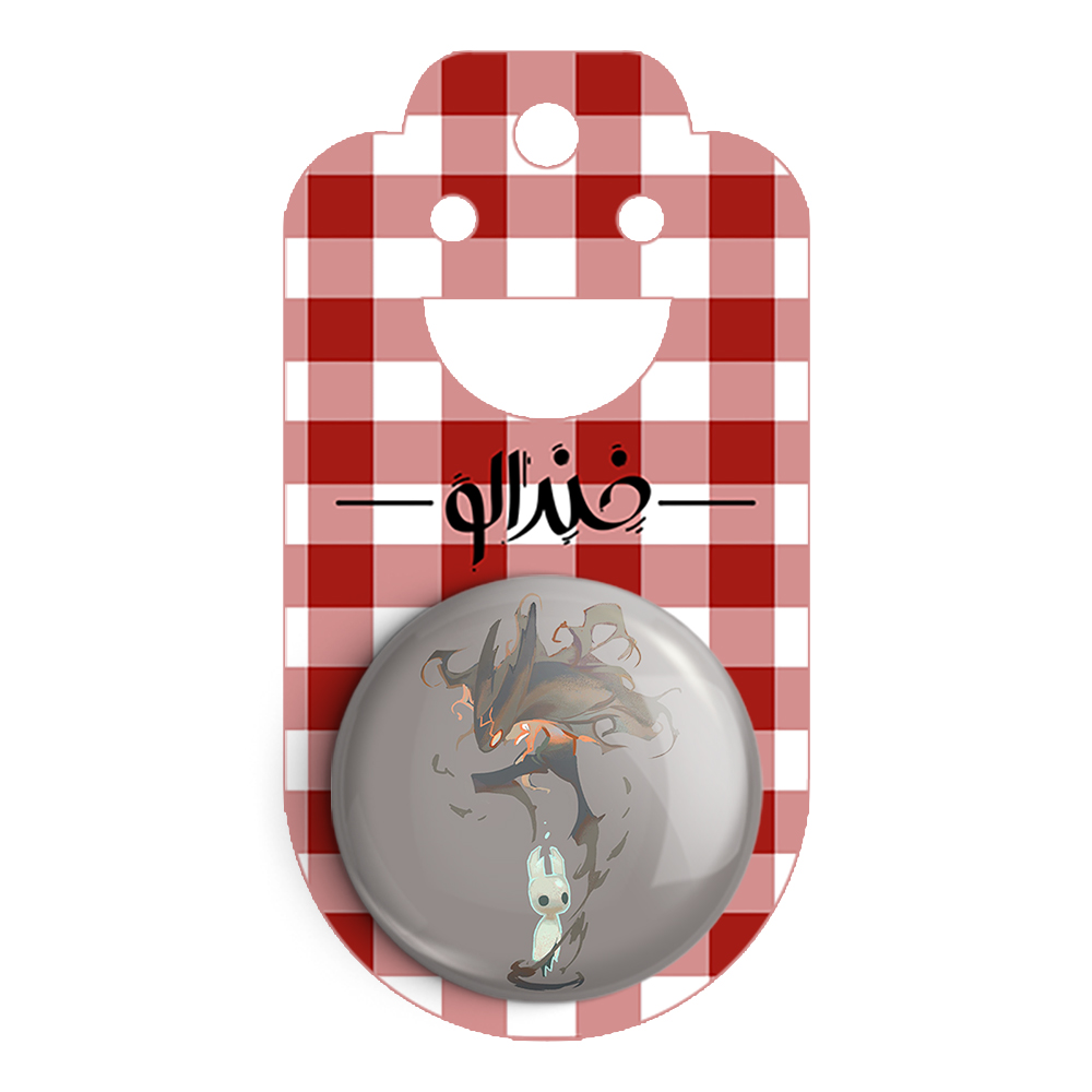 پیکسل 44 میلی متری بازی هالو نایت (Hollow Knight)خندالو با روکش سلفون حرارتی مات مخملی ضدخش و قطعه پشتی رنگی تولید شده است. قطعات پلاستیکی پشت پیکسل با سوزن یک تکه ثابت و بدون لغزش و جا به جایی، ایستایی بسیار بهتری نسبت به پشتی فلزی پیکسل دارند که این مهم در تولید این محصول نیز رعایت شده است.