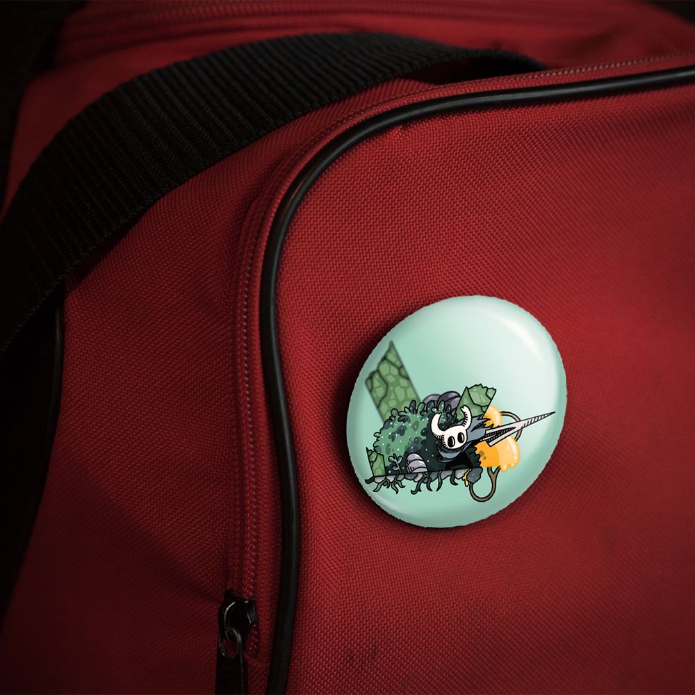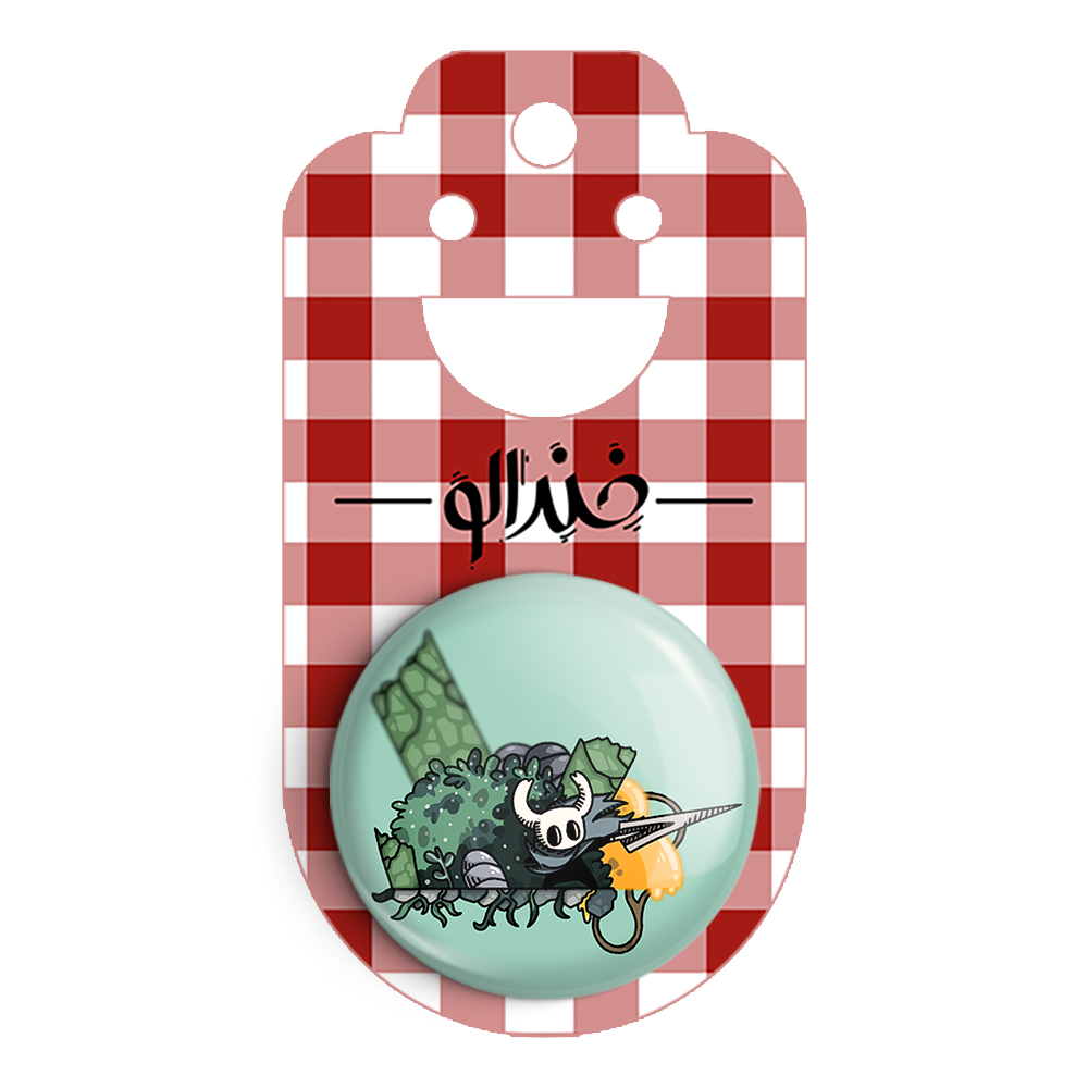 پیکسل 44 میلی متری بازی هالو نایت (Hollow Knight)خندالو با روکش سلفون حرارتی مات مخملی ضدخش و قطعه پشتی رنگی تولید شده است. قطعات پلاستیکی پشت پیکسل با سوزن یک تکه ثابت و بدون لغزش و جا به جایی، ایستایی بسیار بهتری نسبت به پشتی فلزی پیکسل دارند که این مهم در تولید این محصول نیز رعایت شده است.