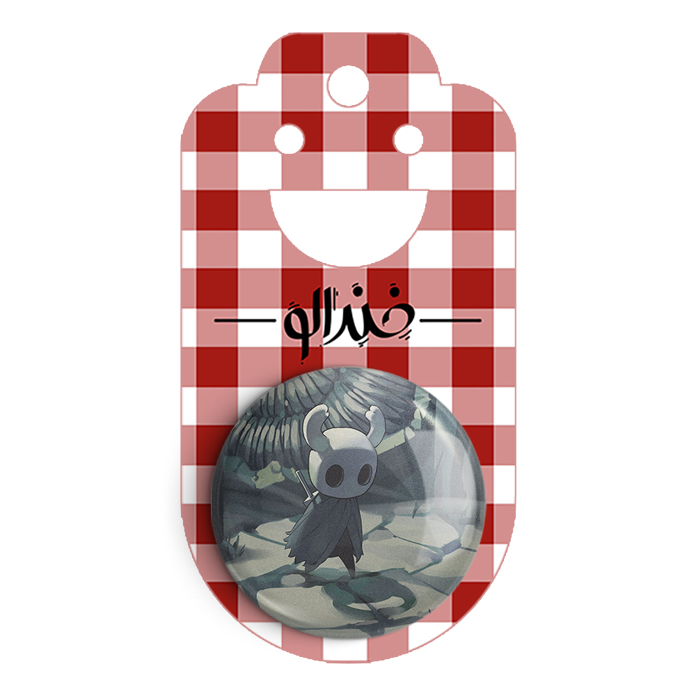 پیکسل 44 میلی متری بازی هالو نایت (Hollow Knight)خندالو با روکش سلفون حرارتی مات مخملی ضدخش و قطعه پشتی رنگی تولید شده است. قطعات پلاستیکی پشت پیکسل با سوزن یک تکه ثابت و بدون لغزش و جا به جایی، ایستایی بسیار بهتری نسبت به پشتی فلزی پیکسل دارند که این مهم در تولید این محصول نیز رعایت شده است.