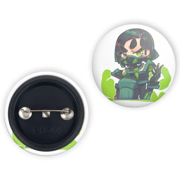 پیکسل 44 میلی متری بازی ولورانت (Valorant)خندالو با روکش سلفون حرارتی مات مخملی ضدخش و قطعه پشتی رنگی تولید شده است. قطعات پلاستیکی پشت پیکسل با سوزن یک تکه ثابت و بدون لغزش و جا به جایی، ایستایی بسیار بهتری نسبت به پشتی فلزی پیکسل دارند که این مهم در تولید این محصول نیز رعایت شده است.