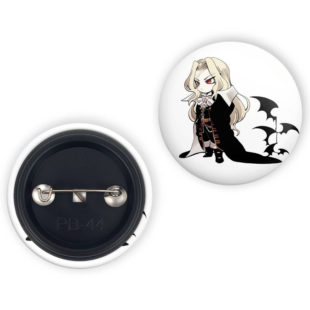 پیکسل 44 میلی متری بازی کسلوانیا (Castlevania)خندالو با روکش سلفون حرارتی مات مخملی ضدخش و قطعه پشتی رنگی تولید شده است. قطعات پلاستیکی پشت پیکسل با سوزن یک تکه ثابت و بدون لغزش و جا به جایی، ایستایی بسیار بهتری نسبت به پشتی فلزی پیکسل دارند که این مهم در تولید این محصول نیز رعایت شده است.