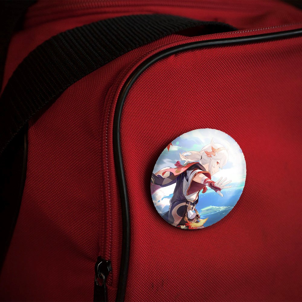 پیکسل 44 میلی متری بازی گنشین ایمپکت Genshin Impact خندالو با روکش سلفون حرارتی مات مخملی ضدخش و قطعه پشتی رنگی تولید شده است.پلاستیکی پشت پیکسل با سوزن یک تکه ثابت و بدون لغزش و جا به جایی، ایستایی بسیار بهتری نسبت به پشتی فلزی پیکسل دارند که این مهم در تولید این محصول نیز رعایت شده است.