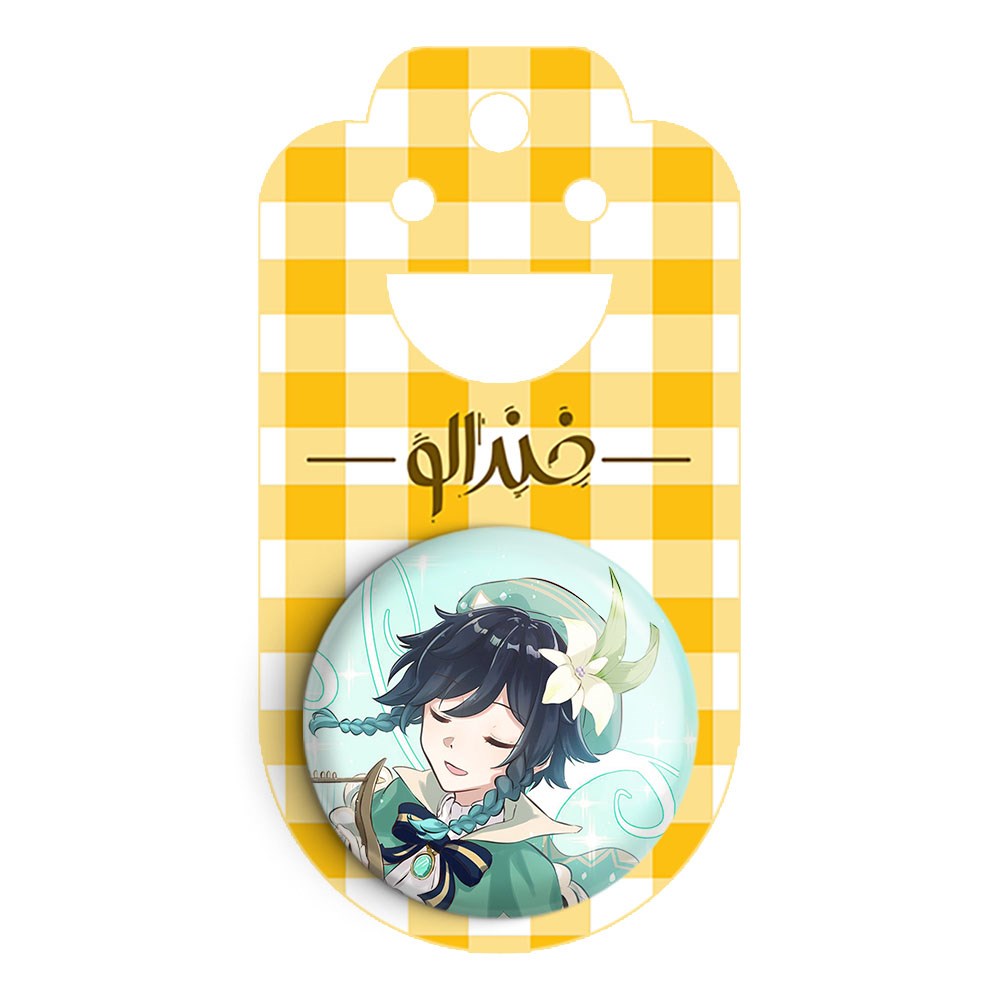 پیکسل 44 میلی متری بازی گنشین ایمپکت Genshin Impact خندالو با روکش سلفون حرارتی مات مخملی ضدخش و قطعه پشتی رنگی تولید شده است.پلاستیکی پشت پیکسل با سوزن یک تکه ثابت و بدون لغزش و جا به جایی، ایستایی بسیار بهتری نسبت به پشتی فلزی پیکسل دارند که این مهم در تولید این محصول نیز رعایت شده است.
