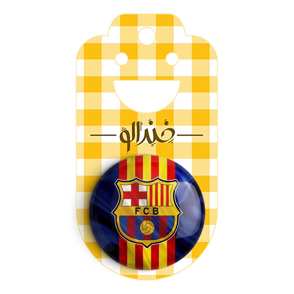 پیکسل 44 میلی متری باشگاه بارسلونا خندالو با روکش سلفون حرارتی مات مخملی ضدخش و قطعه پشتی رنگی تولید شده است.پلاستیکی پشت پیکسل با سوزن یک تکه ثابت و بدون لغزش و جا به جایی، ایستایی بسیار بهتری نسبت به پشتی فلزی پیکسل دارند که این مهم در تولید این محصول نیز رعایت شده است.