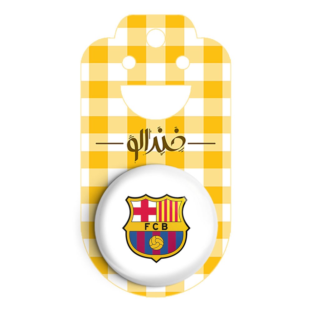 پیکسل 44 میلی متری باشگاه بارسلونا FC Barcelona خندالو با روکش سلفون حرارتی مات مخملی ضدخش و قطعه پشتی رنگی تولید شده است.پلاستیکی پشت پیکسل با سوزن یک تکه ثابت و بدون لغزش و جا به جایی، ایستایی بسیار بهتری نسبت به پشتی فلزی پیکسل دارند که این مهم در تولید این محصول نیز رعایت شده است.