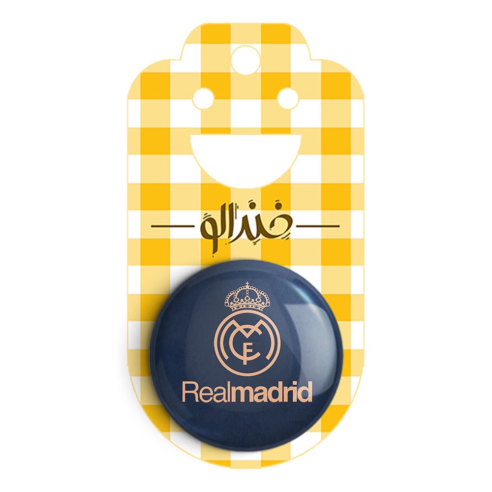 پیکسل 44 میلی متری باشگاه رئال مادرید خندالو با روکش سلفون حرارتی مات مخملی ضدخش و قطعه پشتی رنگی تولید شده است.پلاستیکی پشت پیکسل با سوزن یک تکه ثابت و بدون لغزش و جا به جایی، ایستایی بسیار بهتری نسبت به پشتی فلزی پیکسل دارند که این مهم در تولید این محصول نیز رعایت شده است.