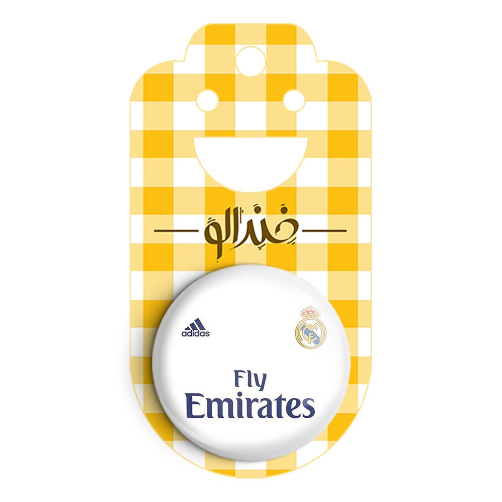 پیکسل 44 میلی متری باشگاه رئال مادرید Real Madrid خندالو با روکش سلفون حرارتی مات مخملی ضدخش و قطعه پشتی رنگی تولید شده است.پلاستیکی پشت پیکسل با سوزن یک تکه ثابت و بدون لغزش و جا به جایی، ایستایی بسیار بهتری نسبت به پشتی فلزی پیکسل دارند که این مهم در تولید این محصول نیز رعایت شده است.