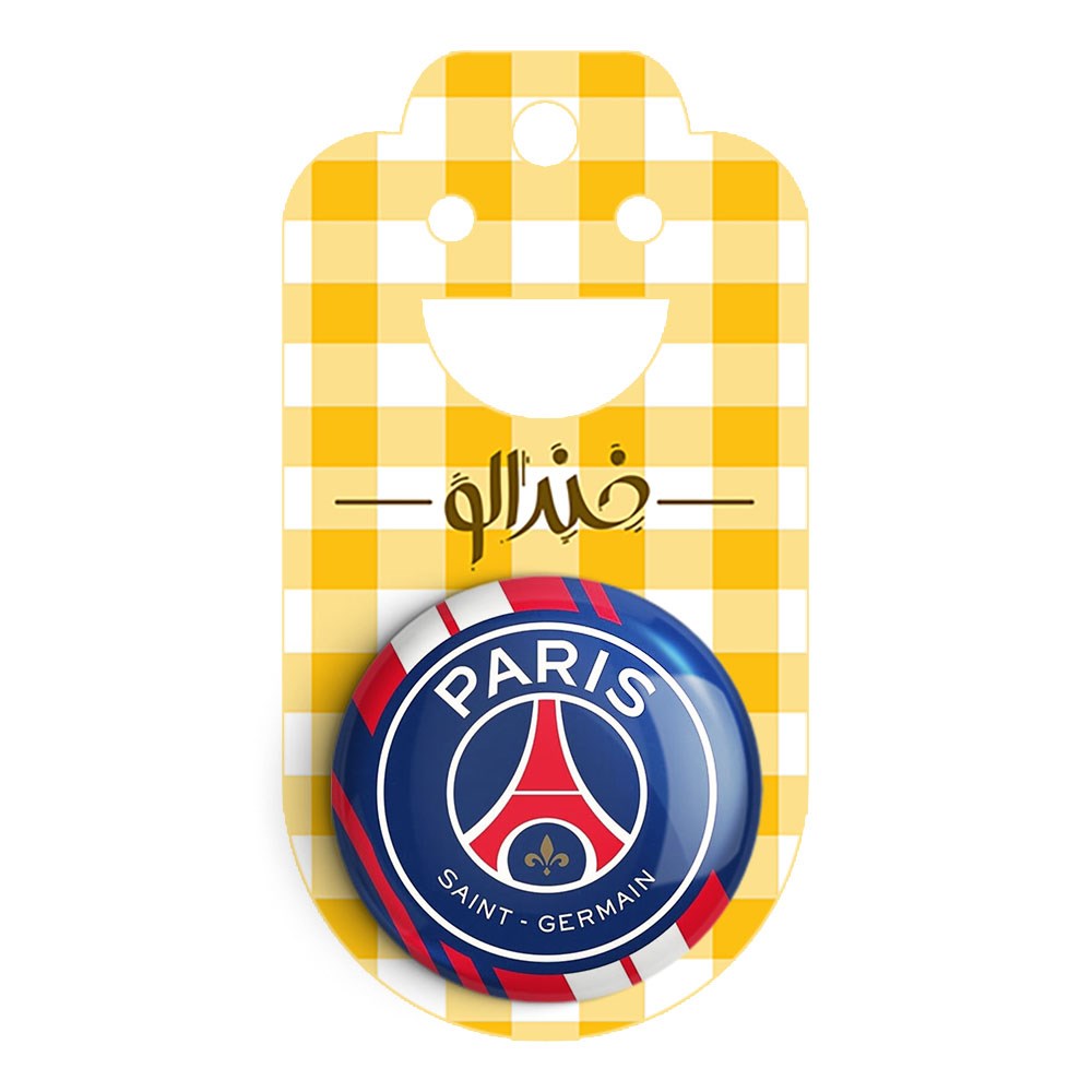 پیکسل 44 میلی متری باشگاه پاری سن ژرمن خندالو با روکش سلفون حرارتی مات مخملی ضدخش و قطعه پشتی رنگی تولید شده است.پلاستیکی پشت پیکسل با سوزن یک تکه ثابت و بدون لغزش و جا به جایی، ایستایی بسیار بهتری نسبت به پشتی فلزی پیکسل دارند که این مهم در تولید این محصول نیز رعایت شده است.