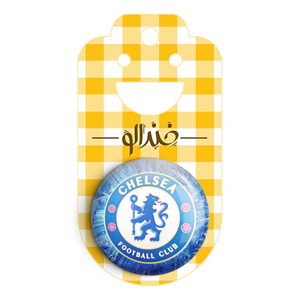پیکسل 44 میلی متری باشگاه چلسی خندالو با روکش سلفون حرارتی مات مخملی ضدخش و قطعه پشتی رنگی تولید شده است.پلاستیکی پشت پیکسل با سوزن یک تکه ثابت و بدون لغزش و جا به جایی، ایستایی بسیار بهتری نسبت به پشتی فلزی پیکسل دارند که این مهم در تولید این محصول نیز رعایت شده است.