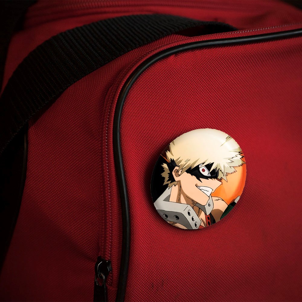 پیکسل 44 میلی متری باکوگو کاتسوکی انیمه آکادمی قهرمان من خندالو با روکش سلفون حرارتی مات مخملی ضدخش و قطعه پشتی رنگی تولید شده است.پلاستیکی پشت پیکسل با سوزن یک تکه ثابت و بدون لغزش و جا به جایی، ایستایی بسیار بهتری نسبت به پشتی فلزی پیکسل دارند که این مهم در تولید این محصول نیز رعایت شده است.