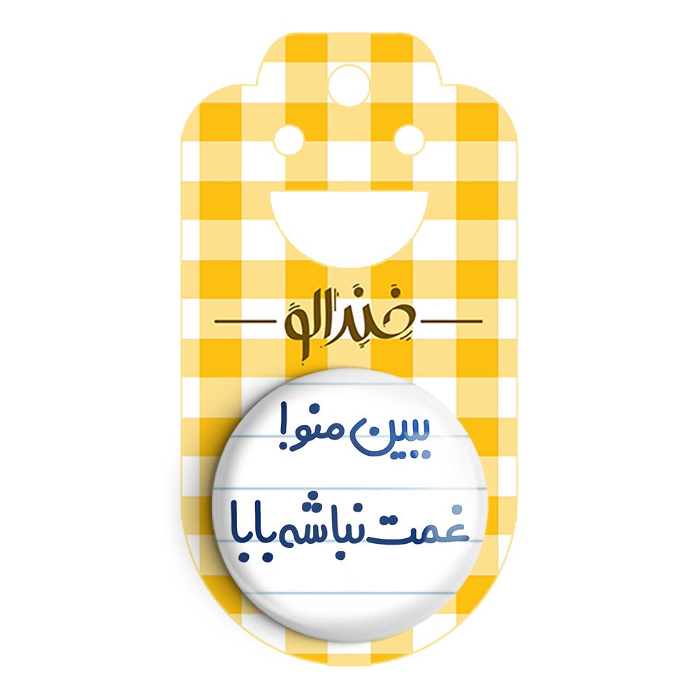 پیکسل 44 میلی متری ببین منو ! غمت نباشه بابا خندالو با روکش سلفون حرارتی مات مخملی ضدخش و قطعه پشتی رنگی تولید شده است.پلاستیکی پشت پیکسل با سوزن یک تکه ثابت و بدون لغزش و جا به جایی، ایستایی بسیار بهتری نسبت به پشتی فلزی پیکسل دارند که این مهم در تولید این محصول نیز رعایت شده است.