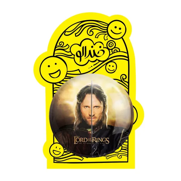 پیکسل بزرگ آراگون ارباب حلقه ها Lord of the Rings خندالو با روکش سلفون حرارتی مات مخملی ضدخش و قطعه پشتی فلزی تولید می شود. قطعات پشت پیکسل های خندالو با سوزن یک تکه ثابت و بدون لغزش و جا به جایی، ایستایی بسیار خوبی دارند که این مهم در تولید پیکسل های 58 میلیمتری نیز رعایت شده است.