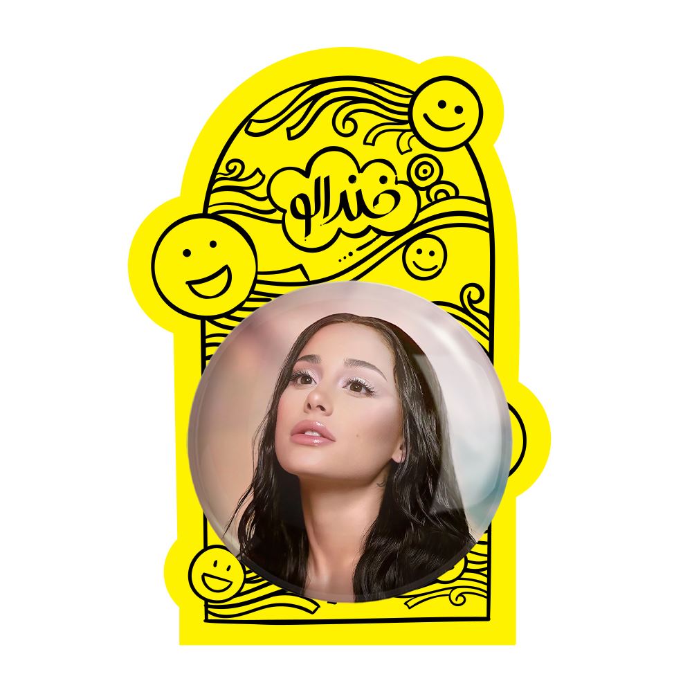 پیکسل بزرگ آریانا گرانده Ariana Grande خندالو با روکش سلفون حرارتی مات مخملی ضدخش و قطعه پشتی فلزی تولید می شود. قطعات پشت پیکسل های خندالو با سوزن یک تکه ثابت و بدون لغزش و جا به جایی، ایستایی بسیار خوبی دارند که این مهم در تولید پیکسل های 58 میلیمتری نیز رعایت شده است.