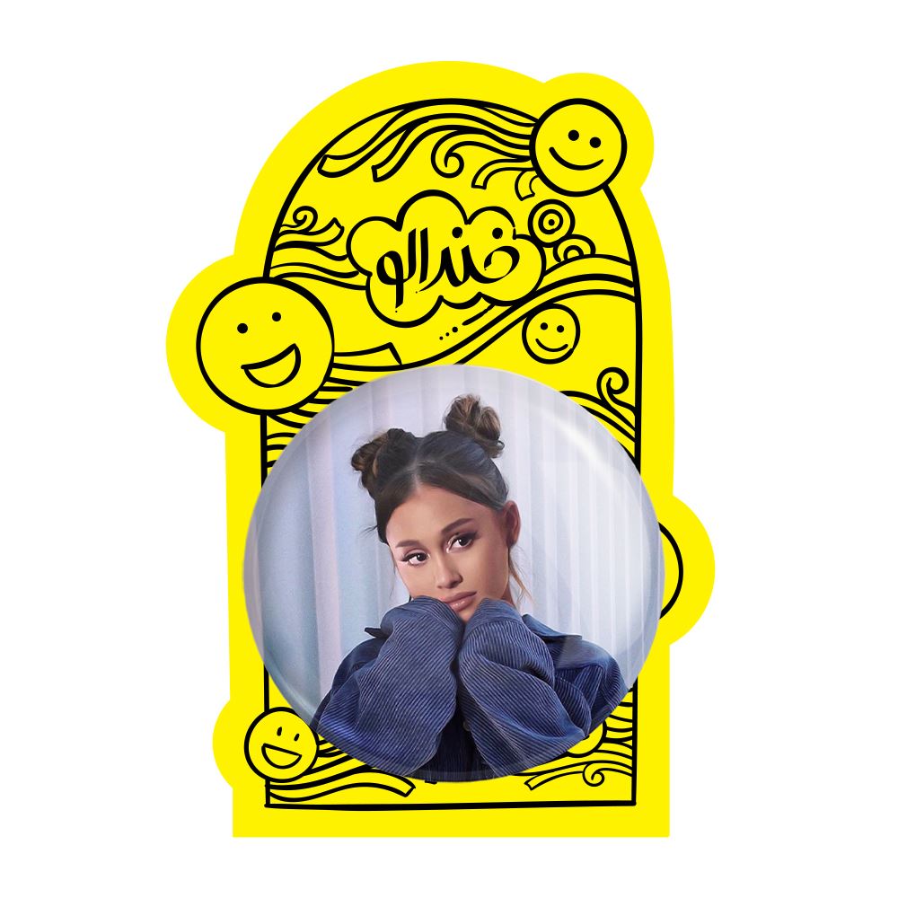 پیکسل بزرگ آریانا گرانده Ariana Grande خندالو با روکش سلفون حرارتی مات مخملی ضدخش و قطعه پشتی فلزی تولید می شود. قطعات پشت پیکسل های خندالو با سوزن یک تکه ثابت و بدون لغزش و جا به جایی، ایستایی بسیار خوبی دارند که این مهم در تولید پیکسل های 58 میلیمتری نیز رعایت شده است.