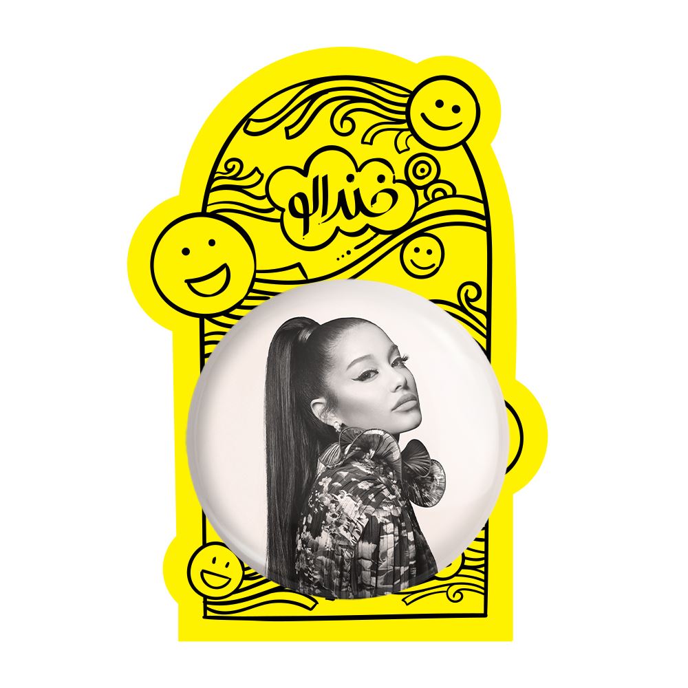 پیکسل بزرگ آریانا گرانده Ariana Grande خندالو با روکش سلفون حرارتی مات مخملی ضدخش و قطعه پشتی فلزی تولید می شود. قطعات پشت پیکسل های خندالو با سوزن یک تکه ثابت و بدون لغزش و جا به جایی، ایستایی بسیار خوبی دارند که این مهم در تولید پیکسل های 58 میلیمتری نیز رعایت شده است.