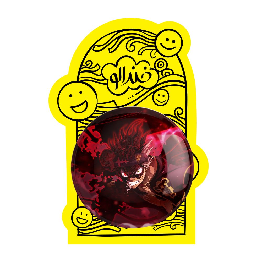 پیکسل بزرگ آستا انیمه بلک کلاور Black Clover خندالو با روکش سلفون حرارتی مات مخملی ضدخش و قطعه پشتی فلزی تولید می شود. قطعات پشت پیکسل های خندالو با سوزن یک تکه ثابت و بدون لغزش و جا به جایی، ایستایی بسیار خوبی دارند که این مهم در تولید پیکسل های 58 میلیمتری نیز رعایت شده است.