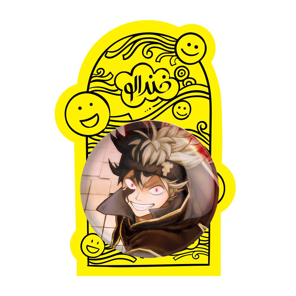 پیکسل بزرگ آستا انیمه بلک کلاور Black Clover خندالو با روکش سلفون حرارتی مات مخملی ضدخش و قطعه پشتی فلزی تولید می شود. قطعات پشت پیکسل های خندالو با سوزن یک تکه ثابت و بدون لغزش و جا به جایی، ایستایی بسیار خوبی دارند که این مهم در تولید پیکسل های 58 میلیمتری نیز رعایت شده است.