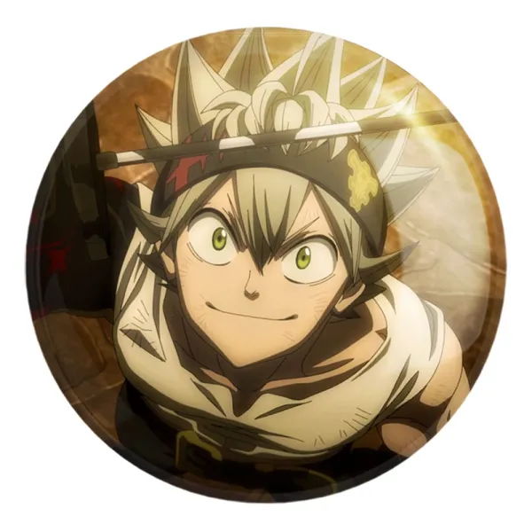 پیکسل بزرگ آستا انیمه بلک کلاور Black Clover خندالو با روکش سلفون حرارتی مات مخملی ضدخش و قطعه پشتی فلزی تولید می شود. قطعات پشت پیکسل های خندالو با سوزن یک تکه ثابت و بدون لغزش و جا به جایی، ایستایی بسیار خوبی دارند که این مهم در تولید پیکسل های 58 میلیمتری نیز رعایت شده است.