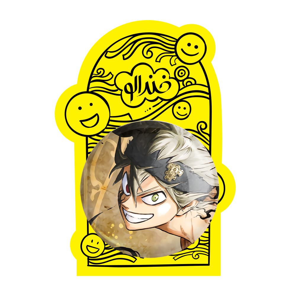 پیکسل بزرگ آستا انیمه بلک کلاور Black Clover خندالو با روکش سلفون حرارتی مات مخملی ضدخش و قطعه پشتی فلزی تولید می شود. قطعات پشت پیکسل های خندالو با سوزن یک تکه ثابت و بدون لغزش و جا به جایی، ایستایی بسیار خوبی دارند که این مهم در تولید پیکسل های 58 میلیمتری نیز رعایت شده است.