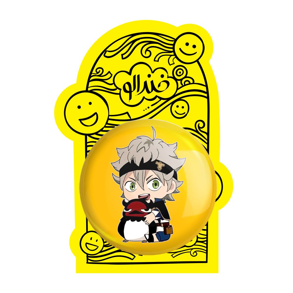 پیکسل بزرگ آستا انیمه بلک کلاور Black Clover خندالو با روکش سلفون حرارتی مات مخملی ضدخش و قطعه پشتی فلزی تولید می شود. قطعات پشت پیکسل های خندالو با سوزن یک تکه ثابت و بدون لغزش و جا به جایی، ایستایی بسیار خوبی دارند که این مهم در تولید پیکسل های 58 میلیمتری نیز رعایت شده است.