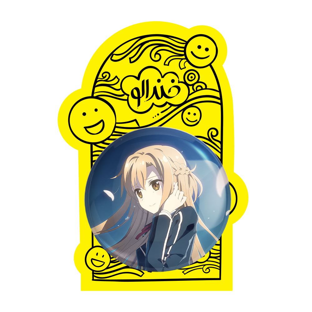 پیکسل بزرگ آسونا یوکی انیمه هنر شمشیر زنی آنلاین خندالو با روکش سلفون حرارتی مات مخملی ضدخش و قطعه پشتی فلزی تولید می شود. قطعات پشت پیکسل های خندالو با سوزن یک تکه ثابت و بدون لغزش و جا به جایی، ایستایی بسیار خوبی دارند که این مهم در تولید پیکسل های 58 میلیمتری نیز رعایت شده است.