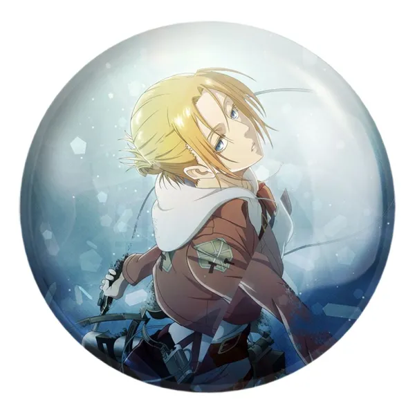 پیکسل بزرگ آنی لئونهارت انیمه اتک آن تایتان Attack on Titan خندالو با روکش سلفون حرارتی مات مخملی ضدخش و قطعه پشتی فلزی تولید می شود. قطعات پشت پیکسل های خندالو با سوزن یک تکه ثابت و بدون لغزش و جا به جایی، ایستایی بسیار خوبی دارند که این مهم در تولید پیکسل های 58 میلیمتری نیز رعایت شده است.