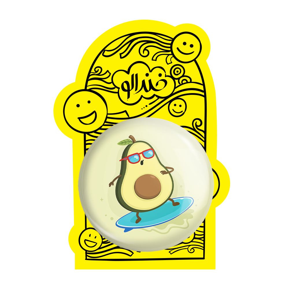 پیکسل بزرگ آووکادو خندالو با روکش سلفون حرارتی مات مخملی ضدخش و قطعه پشتی فلزی تولید می شود. قطعات پشت پیکسل های خندالو با سوزن یک تکه ثابت و بدون لغزش و جا به جایی، ایستایی بسیار خوبی دارند که این مهم در تولید پیکسل های 58 میلیمتری نیز رعایت شده است.