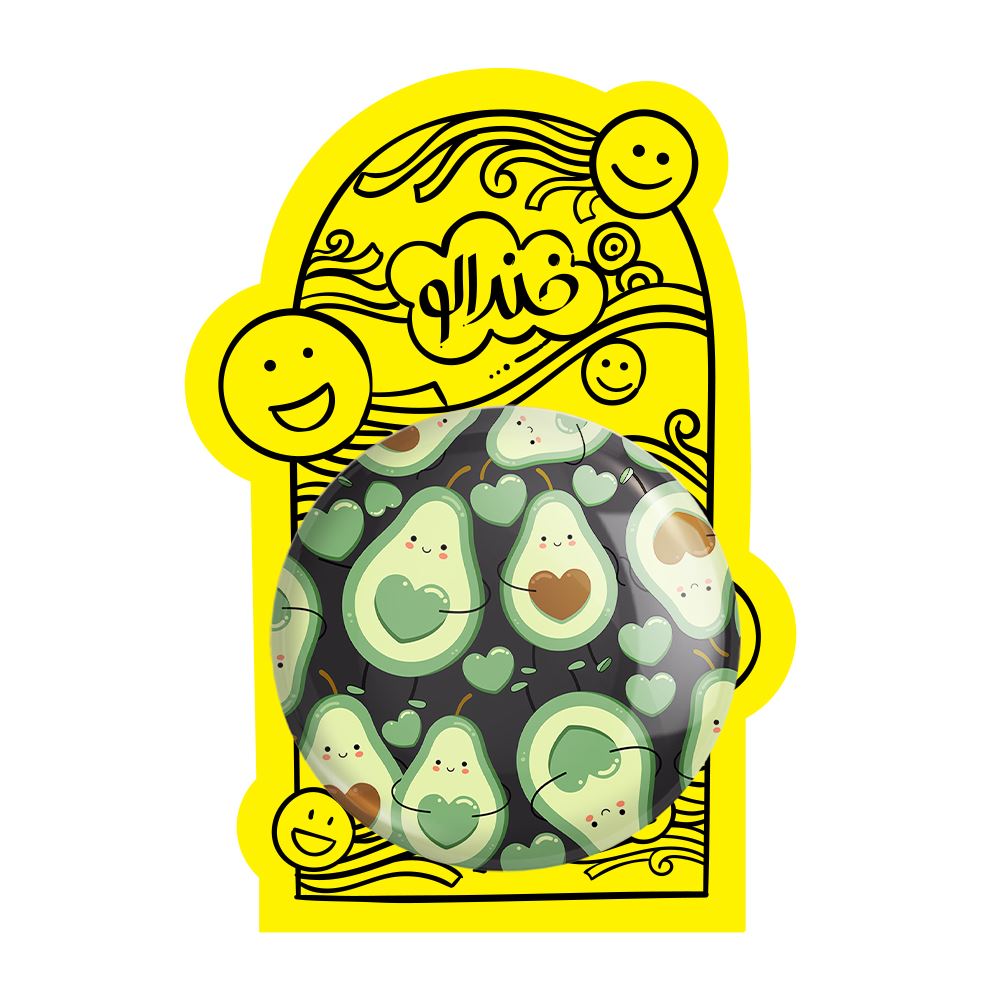 پیکسل بزرگ آووکادو خندالو با روکش سلفون حرارتی مات مخملی ضدخش و قطعه پشتی فلزی تولید می شود. قطعات پشت پیکسل های خندالو با سوزن یک تکه ثابت و بدون لغزش و جا به جایی، ایستایی بسیار خوبی دارند که این مهم در تولید پیکسل های 58 میلیمتری نیز رعایت شده است.