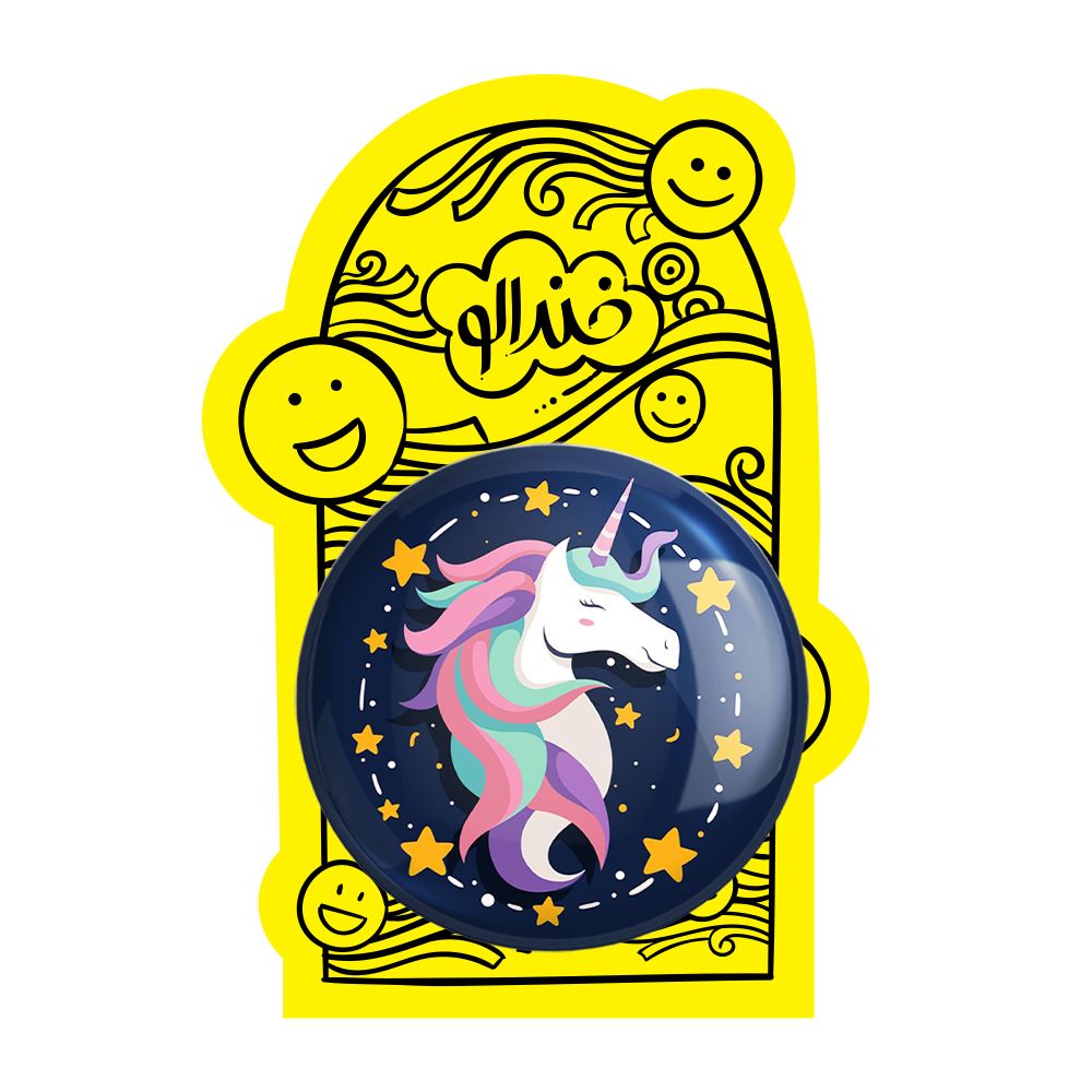 پیکسل بزرگ اسب تک شاخ یونیکورن خندالو با روکش سلفون حرارتی مات مخملی ضدخش و قطعه پشتی فلزی تولید می شود. قطعات پشت پیکسل های خندالو با سوزن یک تکه ثابت و بدون لغزش و جا به جایی، ایستایی بسیار خوبی دارند که این مهم در تولید پیکسل های 58 میلیمتری نیز رعایت شده است.
