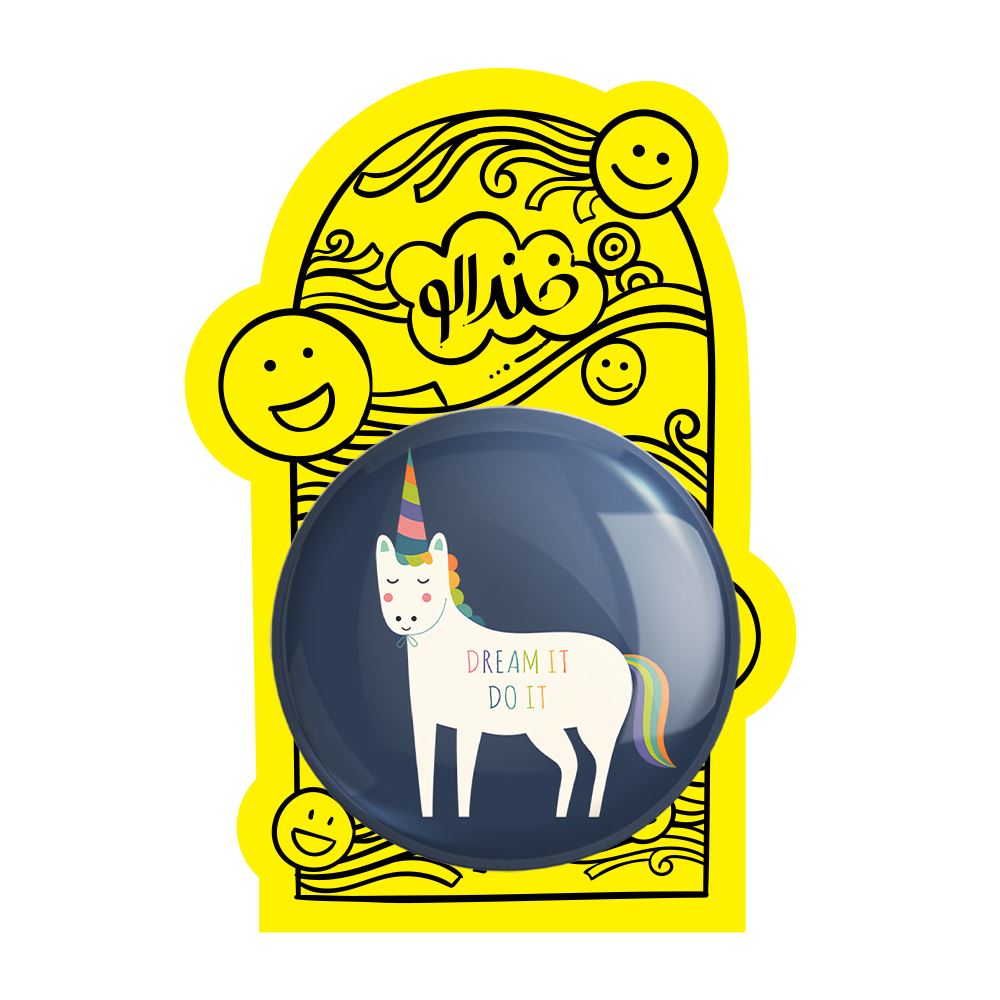 پیکسل بزرگ اسب تک شاخ یونیکورن خندالو با روکش سلفون حرارتی مات مخملی ضدخش و قطعه پشتی فلزی تولید می شود. قطعات پشت پیکسل های خندالو با سوزن یک تکه ثابت و بدون لغزش و جا به جایی، ایستایی بسیار خوبی دارند که این مهم در تولید پیکسل های 58 میلیمتری نیز رعایت شده است.