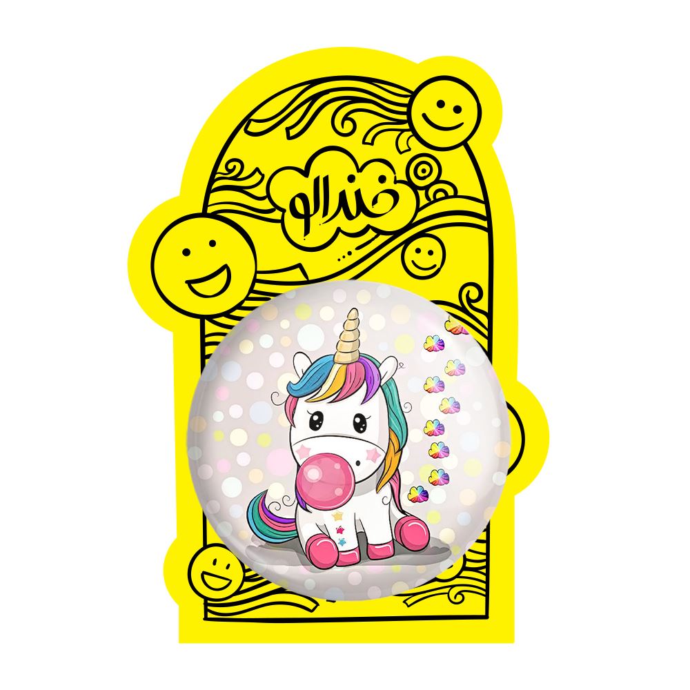 پیکسل بزرگ اسب تک شاخ یونیکورن خندالو با روکش سلفون حرارتی مات مخملی ضدخش و قطعه پشتی فلزی تولید می شود. قطعات پشت پیکسل های خندالو با سوزن یک تکه ثابت و بدون لغزش و جا به جایی، ایستایی بسیار خوبی دارند که این مهم در تولید پیکسل های 58 میلیمتری نیز رعایت شده است.