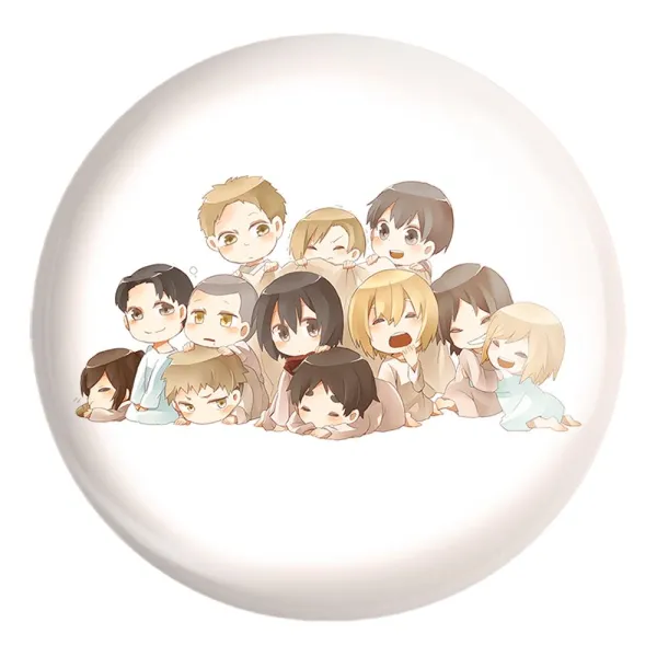 پیکسل بزرگ انیمه اتک آن تایتان Attack on Titan خندالو با روکش سلفون حرارتی مات مخملی ضدخش و قطعه پشتی فلزی تولید می شود. قطعات پشت پیکسل های خندالو با سوزن یک تکه ثابت و بدون لغزش و جا به جایی، ایستایی بسیار خوبی دارند که این مهم در تولید پیکسل های 58 میلیمتری نیز رعایت شده است.