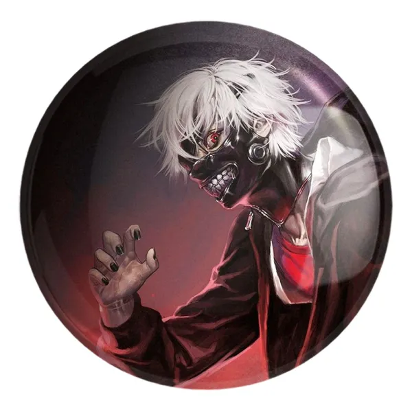 پیکسل بزرگ انیمه توکیو غول Tokyo Ghoul خندالو با روکش سلفون حرارتی مات مخملی ضدخش و قطعه پشتی فلزی تولید می شود. قطعات پشت پیکسل های خندالو با سوزن یک تکه ثابت و بدون لغزش و جا به جایی، ایستایی بسیار خوبی دارند که این مهم در تولید پیکسل های 58 میلیمتری نیز رعایت شده است.