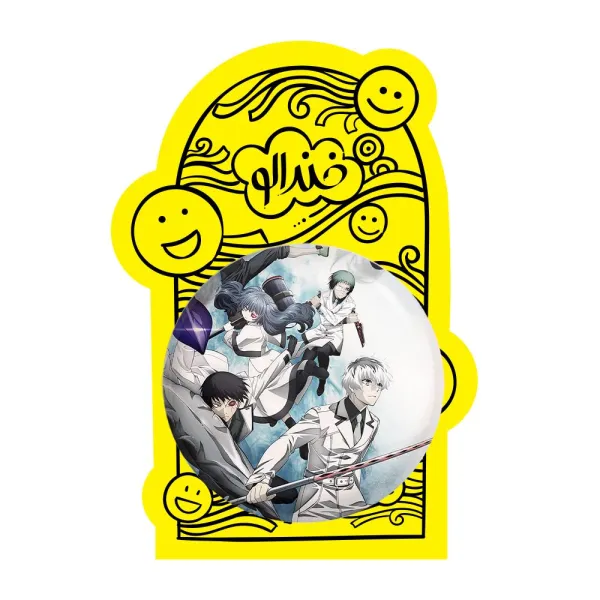 پیکسل بزرگ انیمه توکیو غول Tokyo Ghoul خندالو با روکش سلفون حرارتی مات مخملی ضدخش و قطعه پشتی فلزی تولید می شود. قطعات پشت پیکسل های خندالو با سوزن یک تکه ثابت و بدون لغزش و جا به جایی، ایستایی بسیار خوبی دارند که این مهم در تولید پیکسل های 58 میلیمتری نیز رعایت شده است.