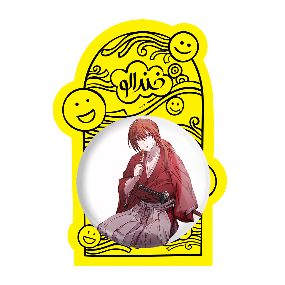 پیکسل بزرگ انیمه رورونی کنشین خندالو با روکش سلفون حرارتی مات مخملی ضدخش و قطعه پشتی فلزی تولید می شود. قطعات پشت پیکسل های خندالو با سوزن یک تکه ثابت و بدون لغزش و جا به جایی، ایستایی بسیار خوبی دارند که این مهم در تولید پیکسل های 58 میلیمتری نیز رعایت شده است.