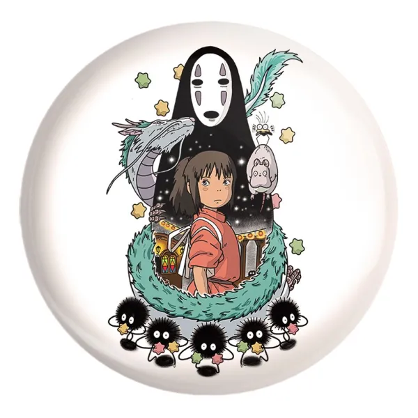 پیکسل بزرگ انیمه شهر اشباح Spirited Away خندالو با روکش سلفون حرارتی مات مخملی ضدخش و قطعه پشتی فلزی تولید می شود. قطعات پشت پیکسل های خندالو با سوزن یک تکه ثابت و بدون لغزش و جا به جایی، ایستایی بسیار خوبی دارند که این مهم در تولید پیکسل های 58 میلیمتری نیز رعایت شده است.