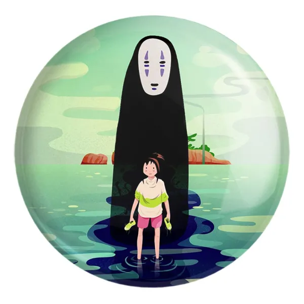 پیکسل بزرگ انیمه شهر اشباح Spirited Away خندالو با روکش سلفون حرارتی مات مخملی ضدخش و قطعه پشتی فلزی تولید می شود. قطعات پشت پیکسل های خندالو با سوزن یک تکه ثابت و بدون لغزش و جا به جایی، ایستایی بسیار خوبی دارند که این مهم در تولید پیکسل های 58 میلیمتری نیز رعایت شده است.