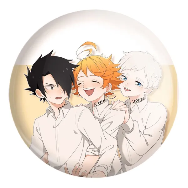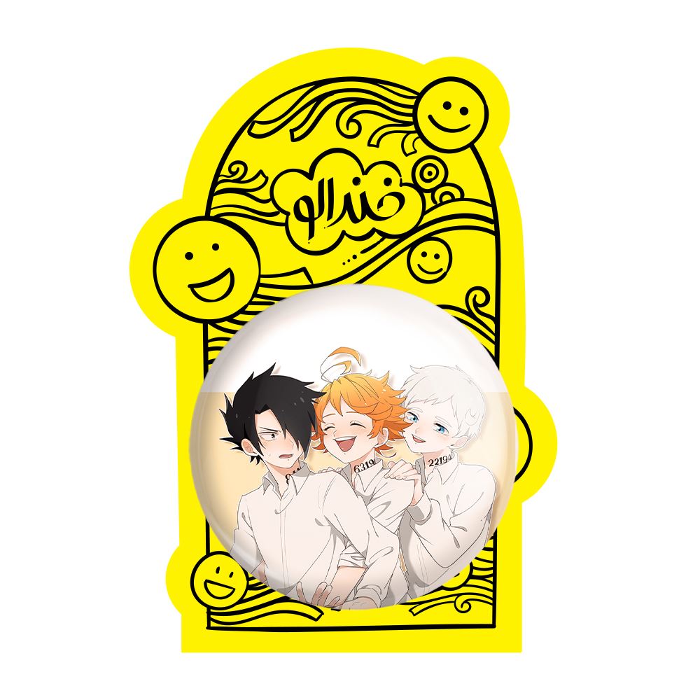 پیکسل بزرگ انیمه ناکجا آباد موعود Promised Neverland خندالو با روکش سلفون حرارتی مات مخملی ضدخش و قطعه پشتی فلزی تولید می شود. قطعات پشت پیکسل های خندالو با سوزن یک تکه ثابت و بدون لغزش و جا به جایی، ایستایی بسیار خوبی دارند که این مهم در تولید پیکسل های 58 میلیمتری نیز رعایت شده است.