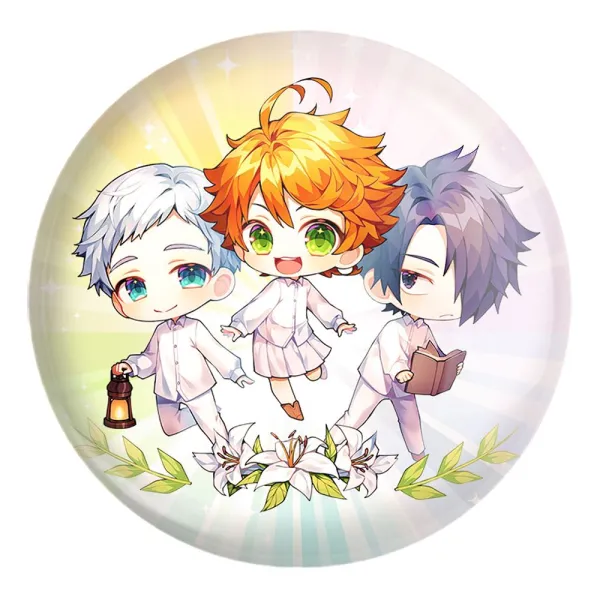 پیکسل بزرگ انیمه ناکجا آباد موعود Promised Neverland خندالو با روکش سلفون حرارتی مات مخملی ضدخش و قطعه پشتی فلزی تولید می شود. قطعات پشت پیکسل های خندالو با سوزن یک تکه ثابت و بدون لغزش و جا به جایی، ایستایی بسیار خوبی دارند که این مهم در تولید پیکسل های 58 میلیمتری نیز رعایت شده است.