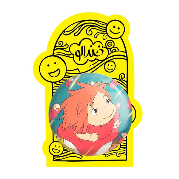 پیکسل بزرگ انیمه پونیو Ponyo خندالو با روکش سلفون حرارتی مات مخملی ضدخش و قطعه پشتی فلزی تولید می شود. قطعات پشت پیکسل های خندالو با سوزن یک تکه ثابت و بدون لغزش و جا به جایی، ایستایی بسیار خوبی دارند که این مهم در تولید پیکسل های 58 میلیمتری نیز رعایت شده است.